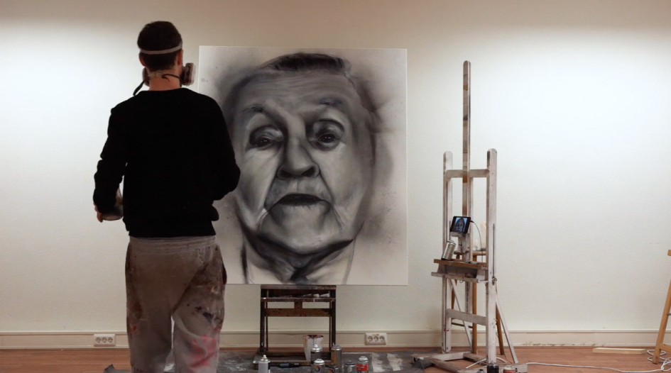 On a rainy day I filmed Timbert working on his beautiful 100+ project. He is painting portraits of the hundred years old. He has a great working space in Amsterdam Noord. The result will be used in the Slownet’s pilot initiated by KLOS Media.